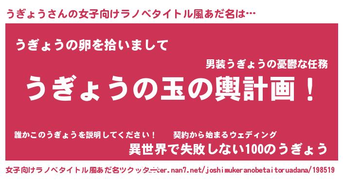 | ヘコむあだ名 | 『うぎぷりん』『うぎょう(笑)』 |