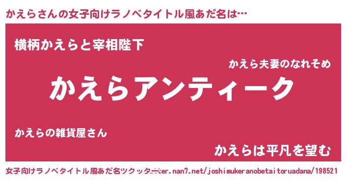 | 男性向けラノベタイトル風あだ名 | 『魔法科高校のかえら』 |