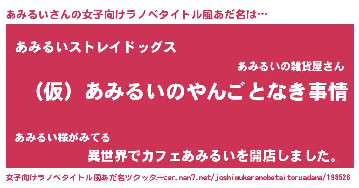 | 男性向けラノベタイトル風あだ名 | 『あみるいの憂鬱』 |
