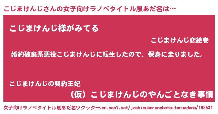 | 男性向けラノベタイトル風あだ名 | 『転生したらこじまけんじだった件』 |