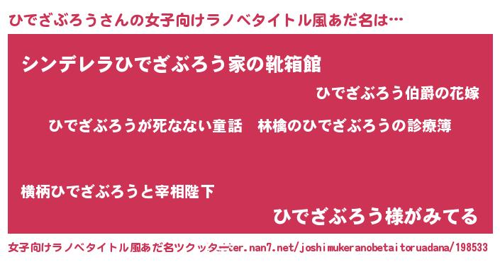 | 意味不明あだ名 | 『住所不定無職ひでざぶろう(6歳)』 |