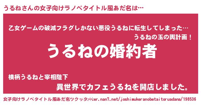 | 胡散臭い通販商品みたいなあだ名 | 『運命の人と巡り会える高級そうな壺…その名も「うるね」』 |