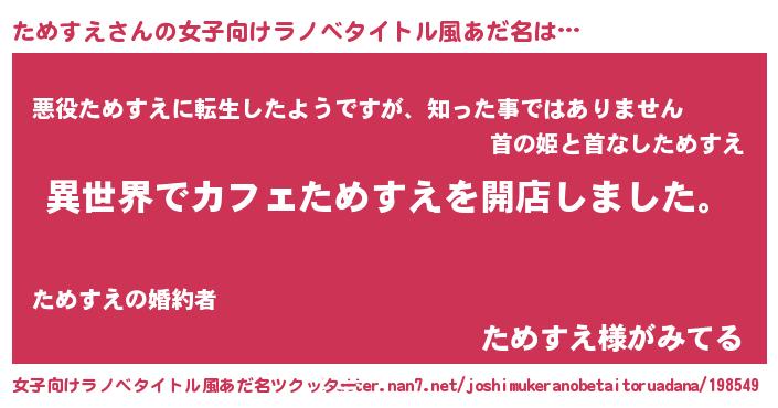 | 男性向けラノベタイトル風あだ名 | 『誰もが恐れるあのためすえが、ぼくの専属メイドになるようです。』 |
