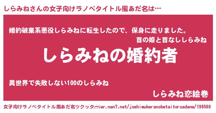 | 意味不明あだ名 | 『しらみねフォーエバー』 |