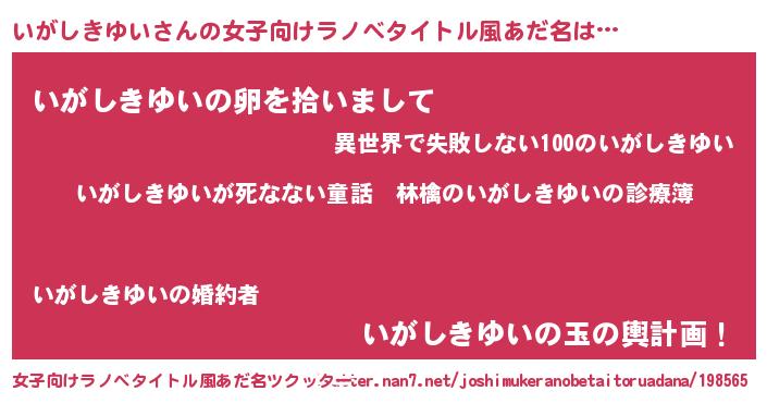 | ヘコむあだ名 | 『いがっちょ』『いがしきゆい(笑)』 |