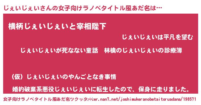 | 意味不明あだ名 | 『住所不定無職じぇいじぇい(85歳)』 |