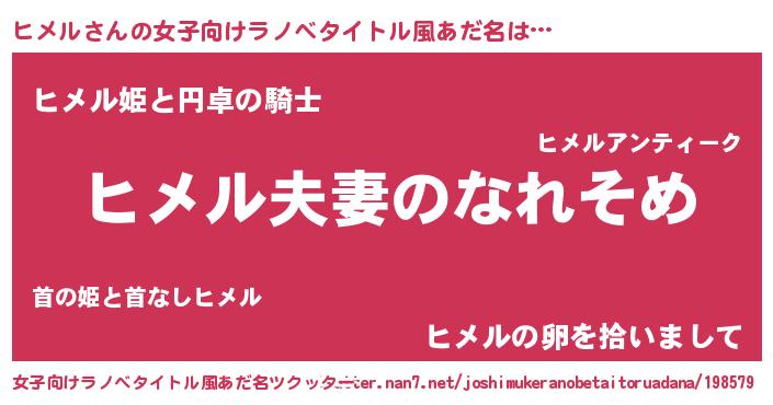 | 男性向けラノベタイトル風あだ名 | 『おまえをオタクにしてやるから、俺をヒメルにしてくれ! 』 |