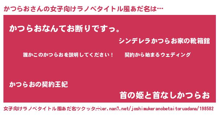| 男性向けラノベタイトル風あだ名 | 『カツラオアートオンライン』 |