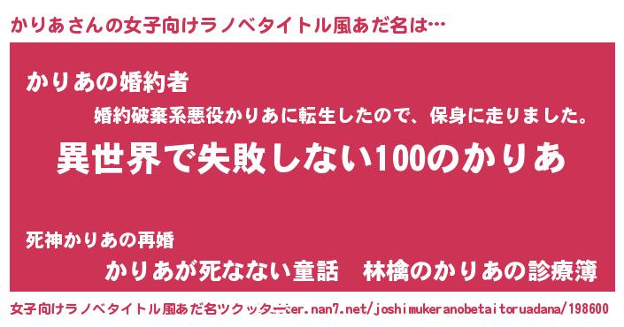 | 胡散臭い通販商品みたいなあだ名 | 『絶対に幸福をもたらす招き猫…その名も「かりあ」』 |