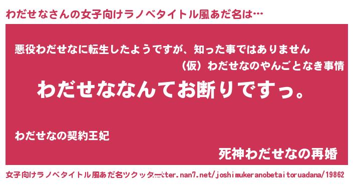 | 意味不明あだ名 | 『自称わだせな』『ペロリンわだせな』 |