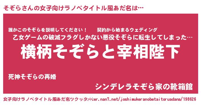 | 男性向けラノベタイトル風あだ名 | 『そぞらに滅ぼされるだけの簡単なお仕事です』 |