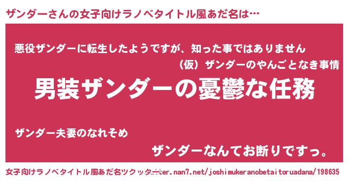 | 男性向けラノベタイトル風あだ名 | 『うちのザンダーが世界を掌握している!』 |