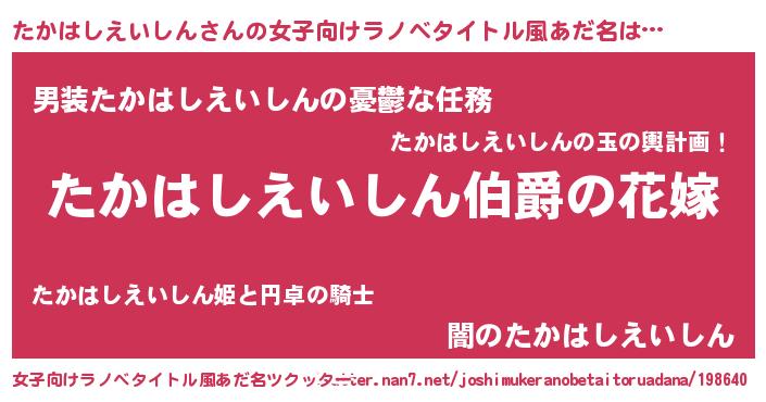 | ファンタジー風あだ名 | 『エターナルタカハシエイシンー』 |
