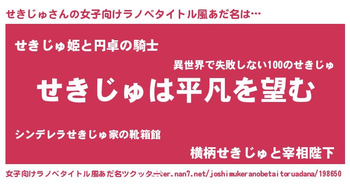 | 意味不明あだ名 | 『とにかく怪しいせきじゅ』 |