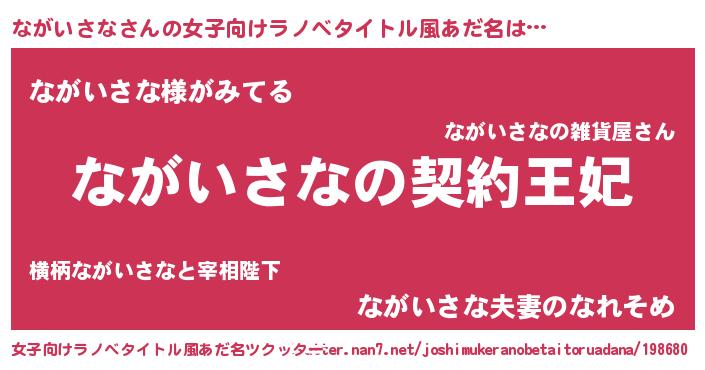 | 男性向けラノベタイトル風あだ名 | 『ながいさなという概念が存在しない退屈な世界 』 |