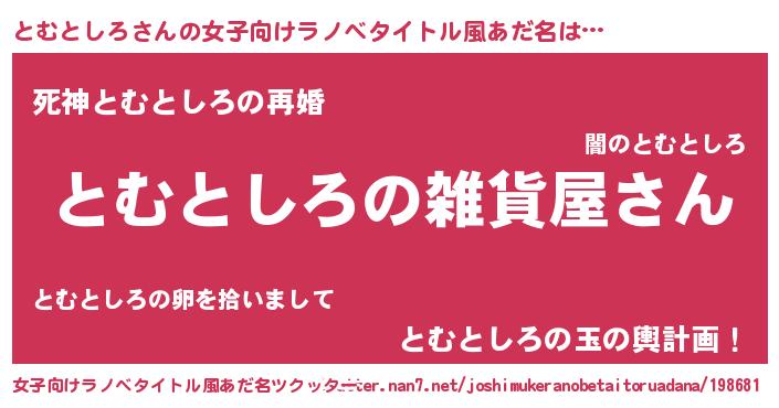 | ファンタジー風あだ名 | 『エターナルトムトシロー』『ゼトムトゥ』 |