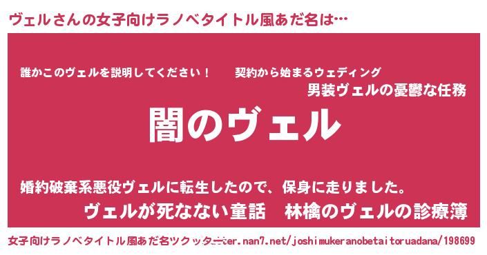 | ヒーロー風カッコイイあだ名 | 『最強戦士ヴェル』『スーパーヴェル』 |