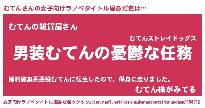 | 胡散臭い通販商品みたいなあだ名 | 『運命の人と巡り会える高級そうな絵画…その名も「むてん」』 |