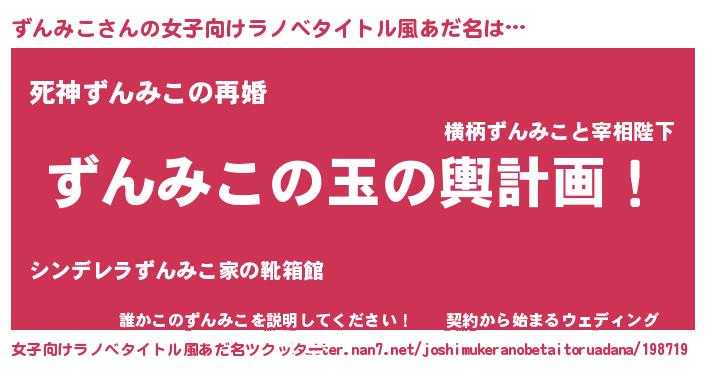 | 意味不明あだ名 | 『ニラ科ずんみこ属』『ペロリンずんみこ』 |