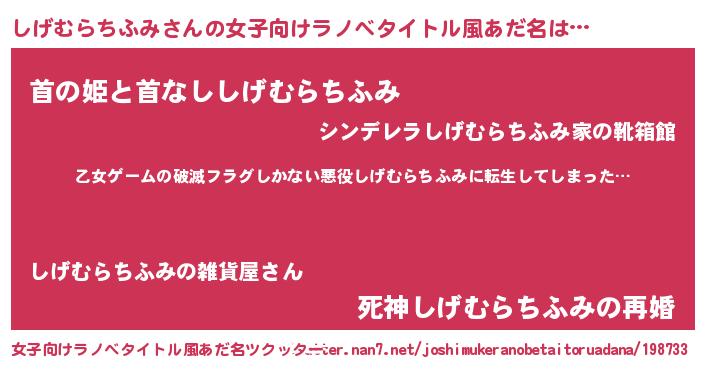 | 男性向けラノベタイトル風あだ名 | 『魔弾の王としげむらちふみ』 |