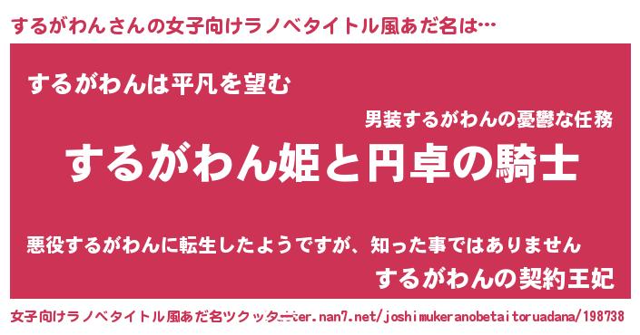 | 男性向けラノベタイトル風あだ名 | 『スルガワンアートオンライン』 |