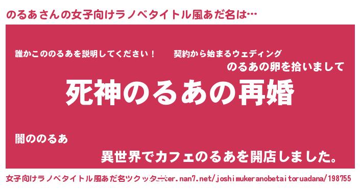 | 男性向けラノベタイトル風あだ名 | 『ノーゲーム・ノーノルア』 |