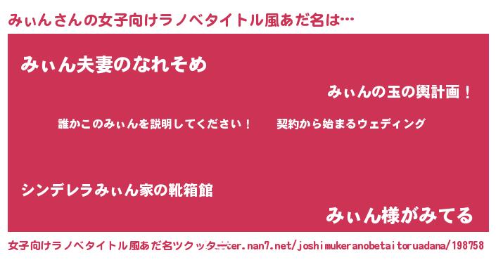 | ファンタジー風あだ名 | 『ミィフェル』『クインミット』 |