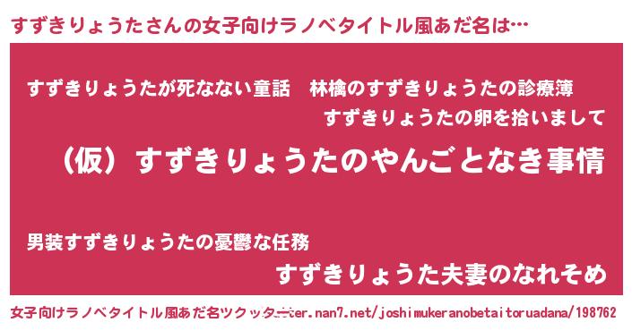 | 男性向けラノベタイトル風あだ名 | 『すずきりょうたの憂鬱』 |