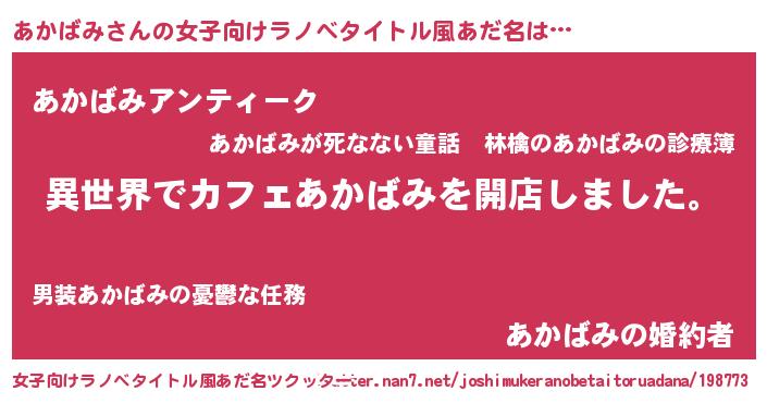 | 男性向けラノベタイトル風あだ名 | 『誰もが恐れるあのあかばみが、ぼくの専属メイドになるようです。』 |