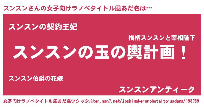 | 意味不明あだ名 | 『ヨモギ科スンスン属』『自称スンスン』 |