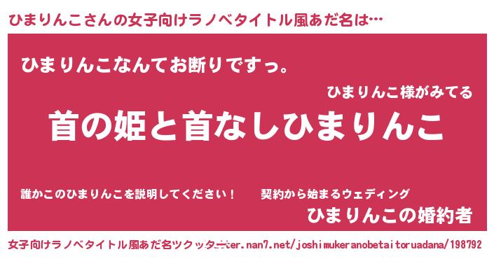 | 男性向けラノベタイトル風あだ名 | 『はたらくひまりんこさま!』 |