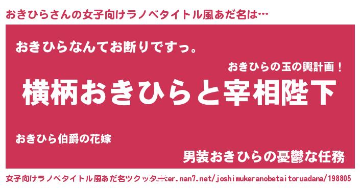 | 男性向けラノベタイトル風あだ名 | 『おきひらに滅ぼされるだけの簡単なお仕事です』 |
