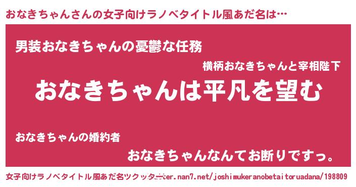 | 男性向けラノベタイトル風あだ名 | 『ダンジョンにおなきちゃんを求めるのは間違っているだろうか』 |