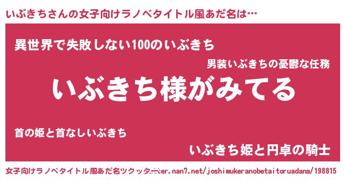| ヘコむあだ名 | 『いぶっぺ』『いぶきち(小並感)』 |