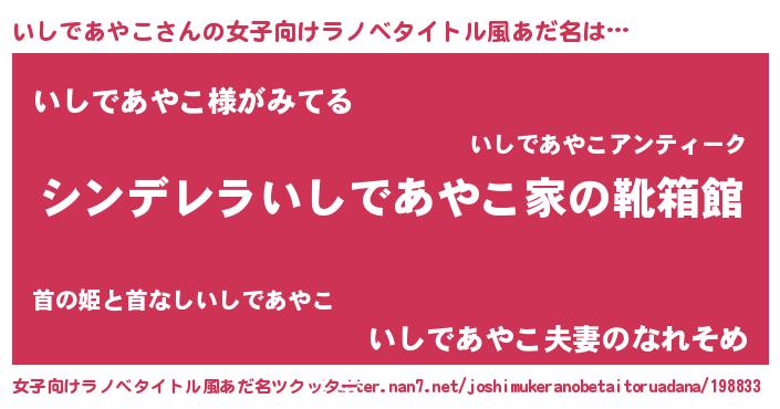 | 胡散臭い通販商品みたいなあだ名 | 『信頼と実績のネックレス…その名も「いしであやこ」』 |