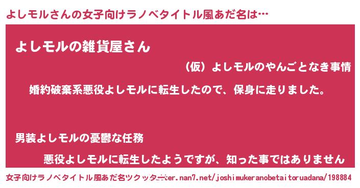 | 男性向けラノベタイトル風あだ名 | 『転生したらよしモルだった件』 |