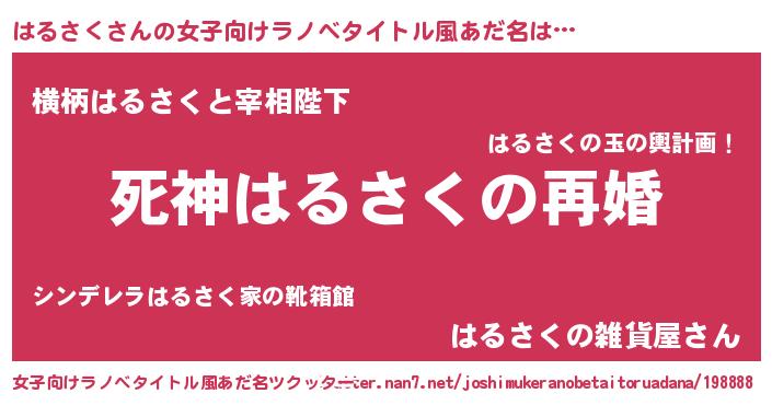 | 男性向けラノベタイトル風あだ名 | 『ノーゲーム・ノーハルサク』 |