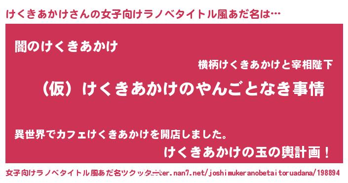 | 男性向けラノベタイトル風あだ名 | 『けくきあかけの憂鬱』 |