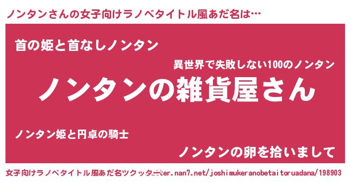 | ファンタジー風あだ名 | 『エターナルノンタンー』『ノンフェル』 |