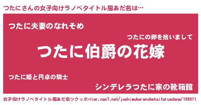 | 男性向けラノベタイトル風あだ名 | 『うちの娘の為ならば、俺はもしかしたらつたにも倒せるかもしれない。』 |
