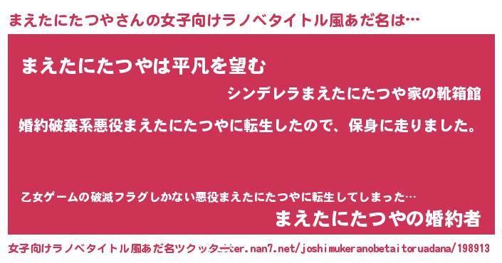 | 胡散臭い通販商品みたいなあだ名 | 『伝統あるサプリメント…その名も「まえたにたつや」』 |