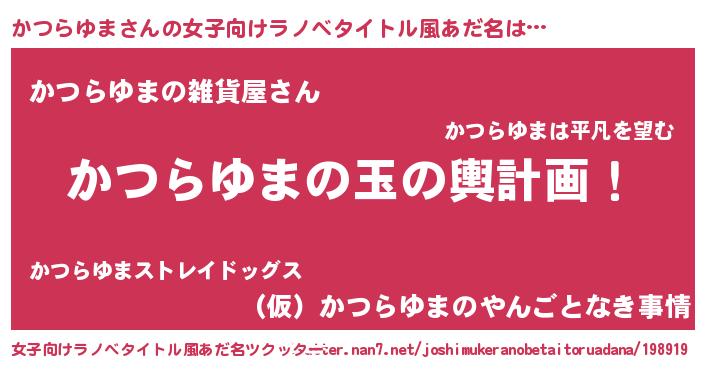 | 男性向けラノベタイトル風あだ名 | 『転生したらかつらゆまだった件』 |