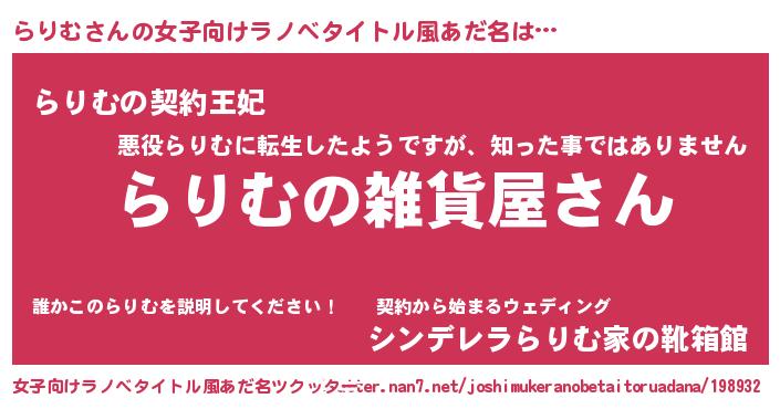 | 男性向けラノベタイトル風あだ名 | 『やはりらりむの青春ラブコメはまちがっている 』 |