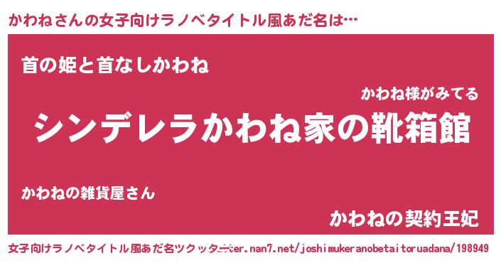 | 男性向けラノベタイトル風あだ名 | 『緋弾のカワネ』『はたらくかわねさま!』 |