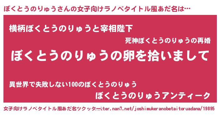 | 胡散臭い通販商品みたいなあだ名 | 『伝統あるサプリメント…その名も「ぼくとうのりゅう」』 |