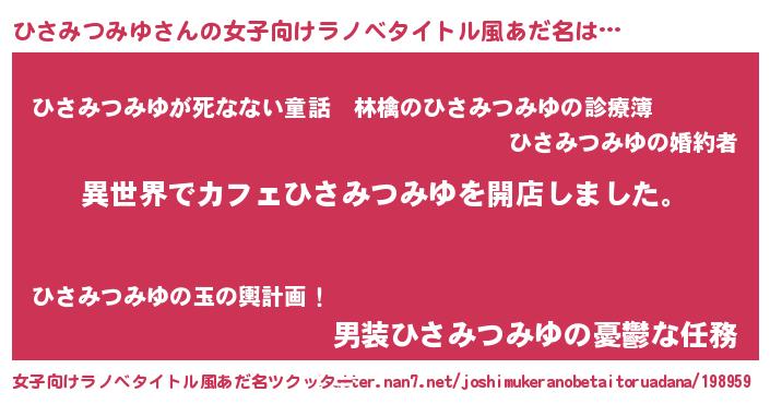 | 男性向けラノベタイトル風あだ名 | 『誰もが恐れるあのひさみつみゆが、ぼくの専属メイドになるようです。』 |