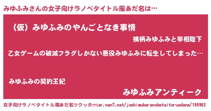 意味不明あだ名 | 『住所不定無職みゆふみ(86歳)』 |