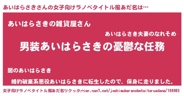 | 男性向けラノベタイトル風あだ名 | 『うちのあいはらさきが世界を掌握している!』 |