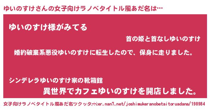 | 胡散臭い通販商品みたいなあだ名 | 『信頼と実績のネックレス…その名も「ゆいのすけ」』 |