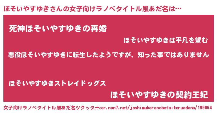 | 男性向けラノベタイトル風あだ名 | 『この素晴らしい世界にほそいやすゆきを!』 |